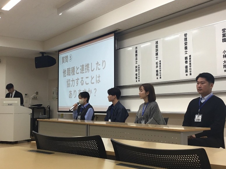 健康栄養学科 永井です。 11月1日(土)、低学年のキャリア教育を目的とした「QOLサポーターと学生の集い」が開催されました。 当日は保護者会が予定されていたため、保護者の参加もみられました。 卒業生か …