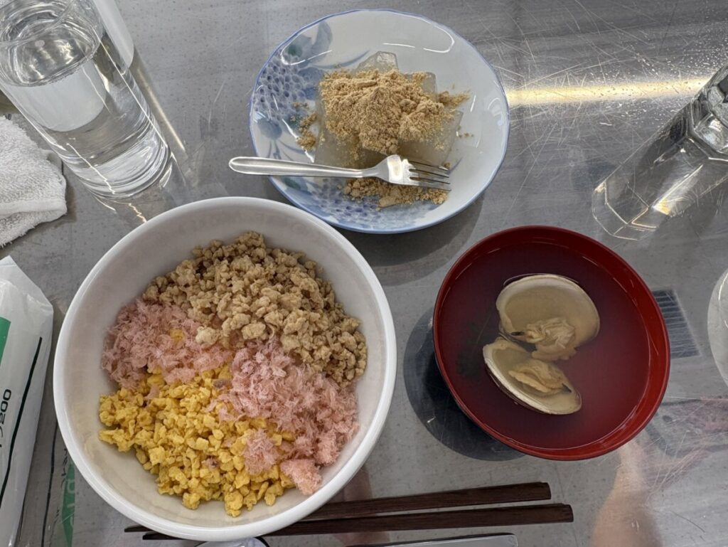 例を紹介すると、三色丼があります。卵やひき肉を炒めて茶碗に盛り、でんぶも乗せています。またワインゼリーを作ったこともありました。