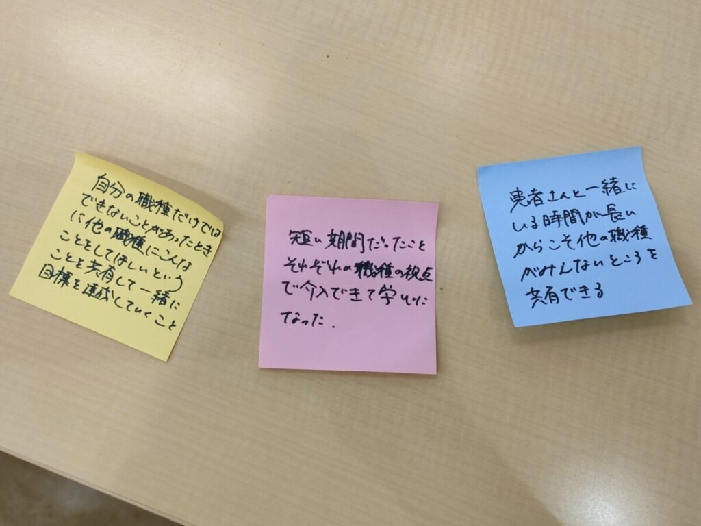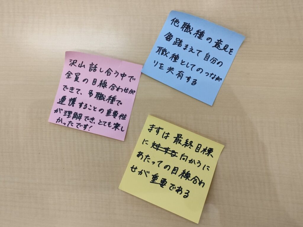 授業の前半は、各職種が個別に支援策を検討しており、会話も少なかったように見受けられましたが、
