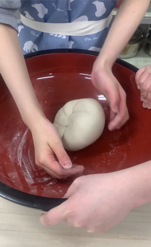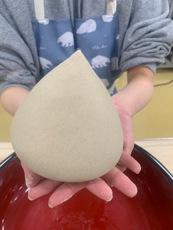 ④ 中の空気を押し出しながら、円錐形に整える(へそ出し)。