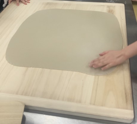 ⑤ 生地を均等になるようにのし。丁寧に折りたたみ、好みの太さに切る。