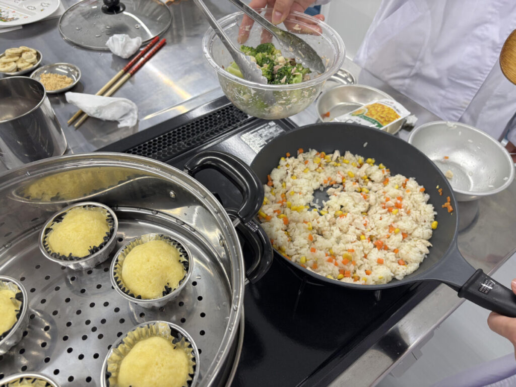 先日2年生の授業の「栄養学実習Ⅱ」で幼児期・学童期の調理実習を行いました。
