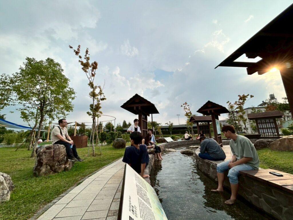 台湾の学生や先生方と一緒に足湯に浸かりながら、この日の思い出や研修全体を振り返る時間を過ごすことができました。