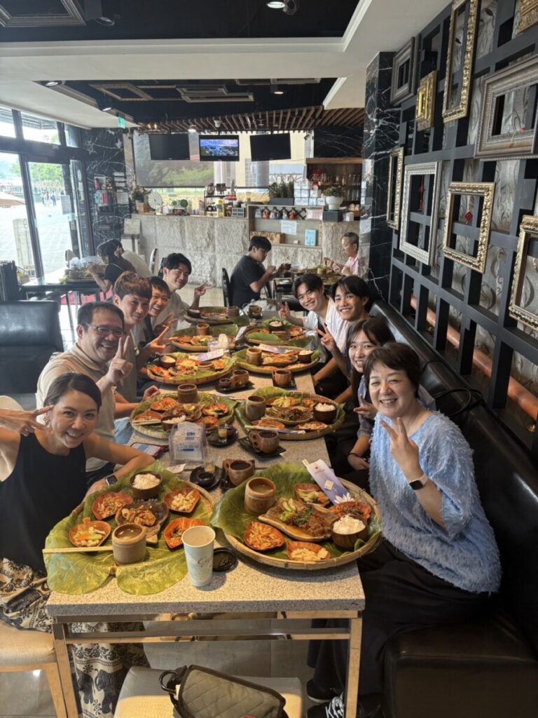 日本の2人前くらいありそうな量の豪華な料理が並び、その美味しさと食文化の違いを実感しました。